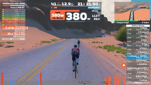 Zwift - VO2Maxtervals-2025-11-24-2x-21x-30 on Tempus Fugit in Watopia - Ouch đ„