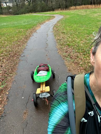Godzilla Thrilla cart pull. Was going for 30, but ended up with 41. Cart broke after 20 miles, but managed to fix it on the fly in the rain. Lots of mud. Great event by Claire. Met lots of nice people who thought I was crazy.