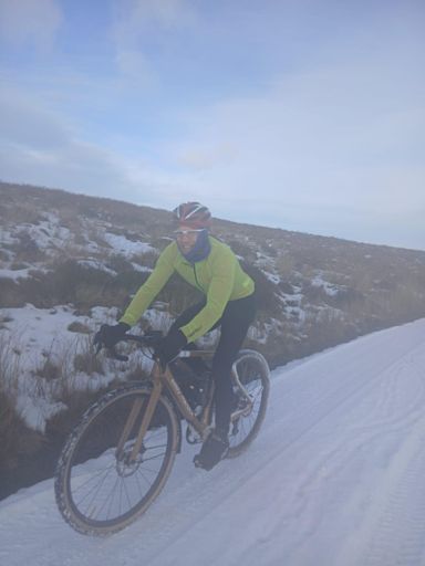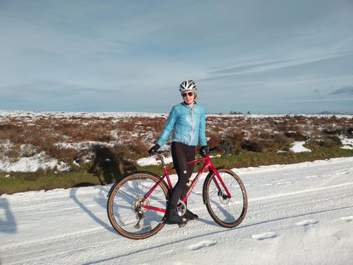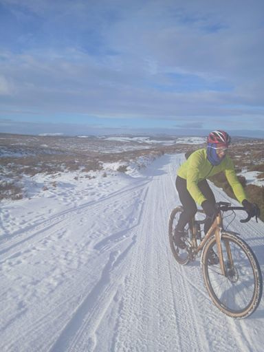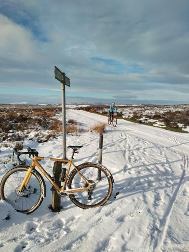 A rare alignment of us both being off work and the girls in school/nursery, new(ish) gravel bikes and snow on The Long Mynd.