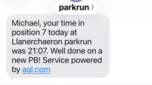 Parkrun PB! Happy with that (21:07) as Llanerchaeron isn’t the fastest course around. Sub 21 next 😉