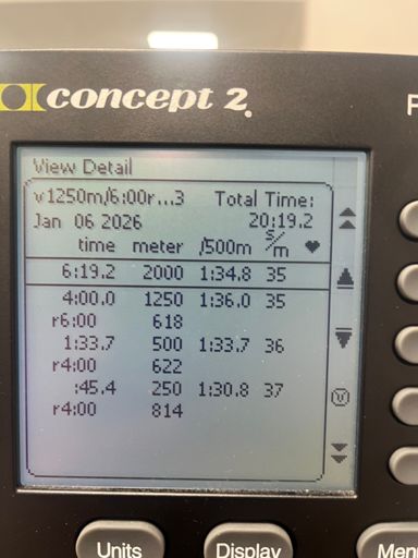 Veslak C2: 1250m/6’- 500m/4’- 250m