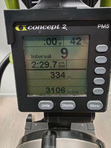 Skierg intervall 1,40 min på og 20 sek av x 9