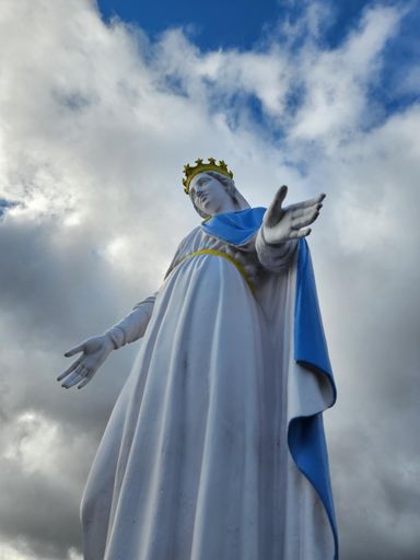 Rando entre soleil et grésil : statue de la vierge Marie au départ de Blacé