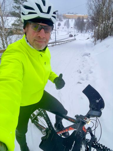 View VirtualRideAfternoon Run kort pass i -12 grader då fick det bli värmeväxlarmask , lite tyngre att andas men mycket varmare luft.