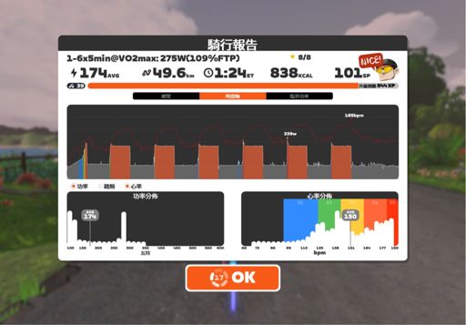 Zwift - 6x5min@VO2max: 275W(109%FTP)