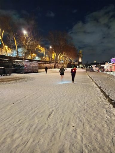 Snow trail in Paris by night