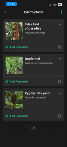 3 species walk. Pigmy date palm, Dogfennel, False bird of paradise