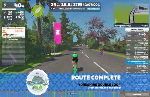 Zwift - LTT rcvry 55-45% 2m-1m 60m on Yorkshire Double Loop in Yorkshire