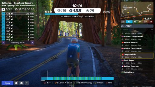 MyWhoosh - JOIN Cycling - 20x 2 min intensive endurance intervals