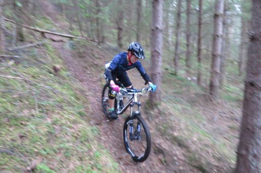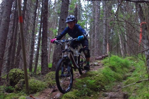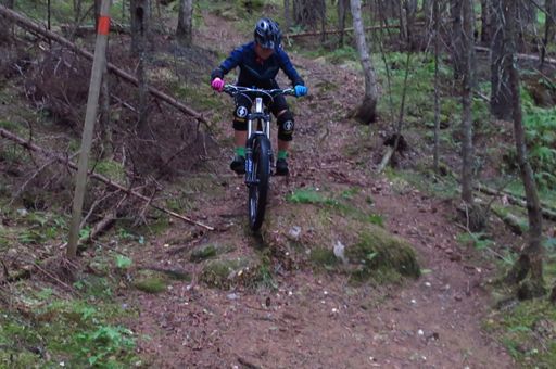 Branäs fra toppen og ned på sti. Småbratt..
