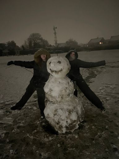 Messing about in the snow with Daisy and Keria. Snowman ⛄️ time