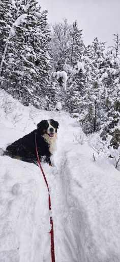 View YogaMarche dans l'après-midi 🐶 Bien brassé dans 40 cm de poudreuse 😃😃 quelques traces de raquette par endroit