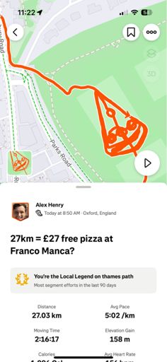 27km = £27 free pizza at Franco Manca?