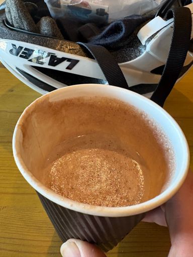 Frost ride up to MV for hot chocolate.