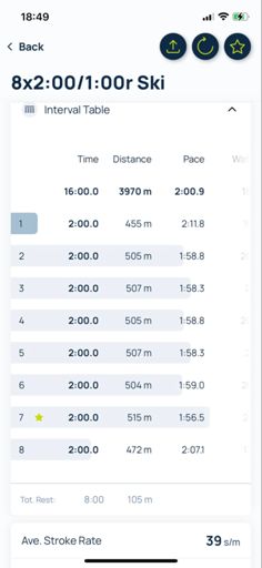 Skierg 6 x 2 min p60 (1:59 - 1:56)