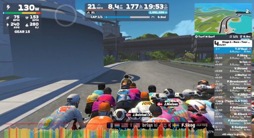 View VirtualRideZwift - Race: Stage 1 - Race - Tour de Zwift on Turf N Surf in Makuri Islands