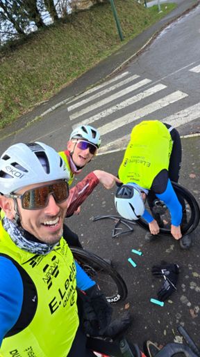 Épique 🤦. Deux crevaisons dans le groupe. Mon pneu qui claque pas 😅. Ça roule carré 🤣. Faut rentrer avant la nuit 🌃 Gaz🥳 Remonter bois Joly hors de quest😅. Faire le tour par Rédéné🤦