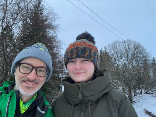Snowy Loch Lee with Su & Heather
