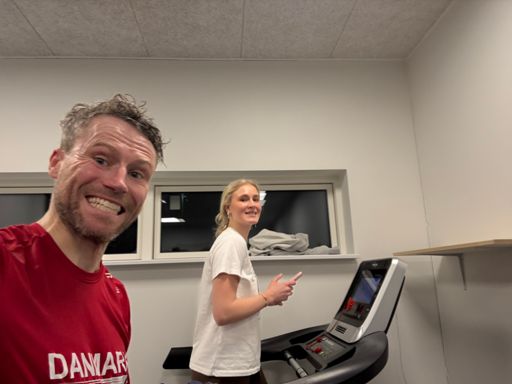 Løbebånd. 5 km progressiv 04:00-03:20