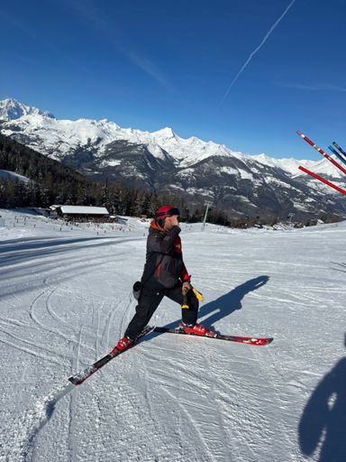 Sessione di sci alpino all’ora di pranzo