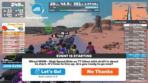 Zwift - Group Ride: WOW - High Speed Ride on TT bikes with draft (B) on Tempus Fugit in Watopia