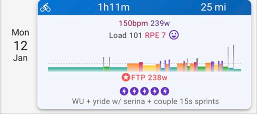 WU + yride w/ serina + couple 15s sprints