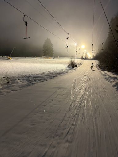 Skiabfahrt am Abend
