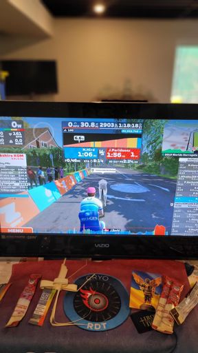 Zwift - Race: ZRL: Redline Rally - Open Aqua League Div1(A) on 2019 Worlds Harrogate Circuit in Yorkshire - embarrassing. Couldn't even make it over first kom in the group. Another humbling ride. Hopefully at some point I get it back.