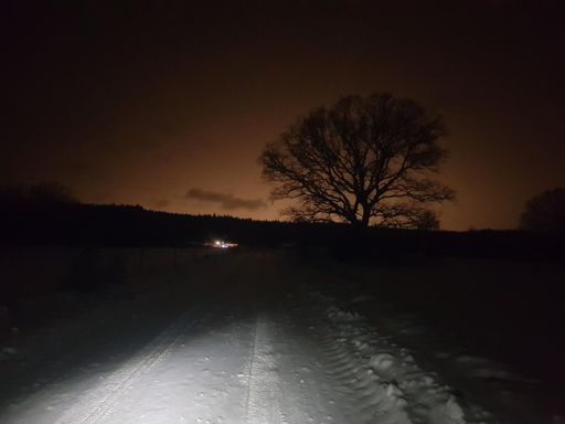 ingen vidare snöstorm, "det liksom blippbloppar", ek i motljusförorening.