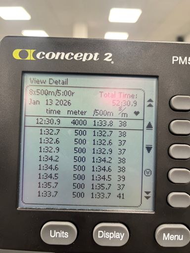 Veslak C2: ☠️ 8x 500m/5’ race pace -2s (1:34,0) ☠️ … 1:33,8