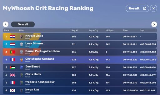 MyWhoosh Crit Racing 4th