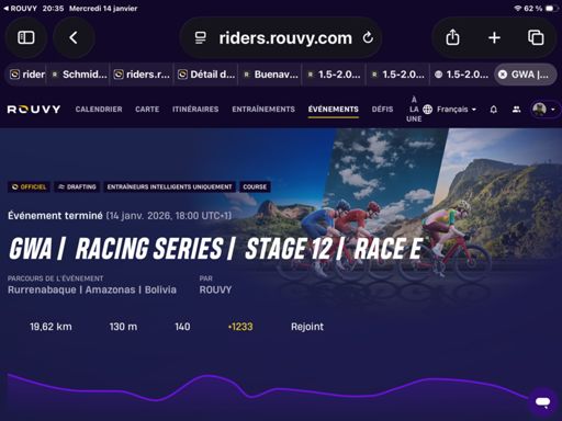 ROUVY - Race: GWA | Racing Series | Stage 12 | Race E. Course. 63 eme sur 116 en toutes catégories. Et premier sur 3 en. 70 74 ans