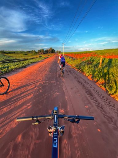 Pedalada de mountain bike ao entardecer
