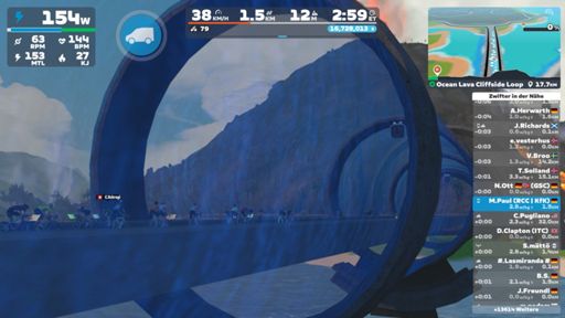 Quick virtual ride on the Zwift route of the week, Watopia’s hilly "Ocean Lava Cliffside Loop" 😅💦🚲💨🔥