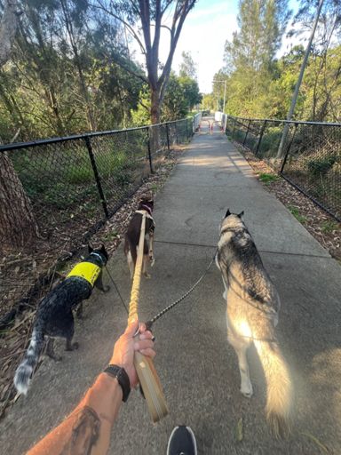 Hero, Lenny and & Roxy walk