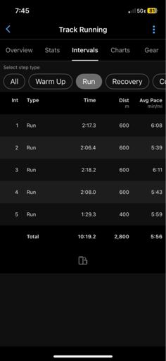 🎯 5 x 600m @ 5K-10K (400m Float) 🎯