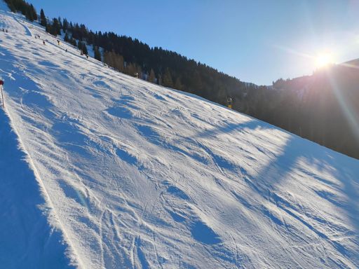 Skiabfahrt am Morgen