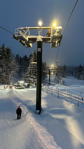 Lång dag med topptur på snöhög i nybörjarområdet och träning på liftevakuering