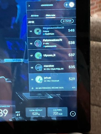Peloton 19.07 Miles in 60 Minutes.