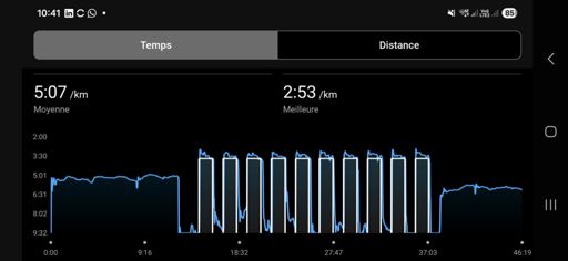 10x400 récup 1' Allure moyenne 3'25, pas mal du tout