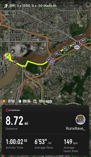 SW : 4 x 2 mins, 4 x :15 Strides