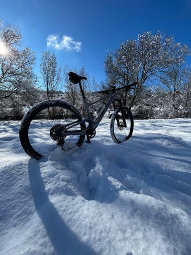 Bicicleta de montaña eléctrica matutina