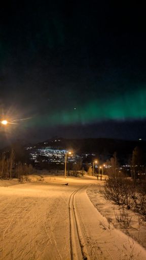 Nocturne du club local sous grosses aurores boréales
