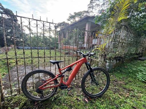 Bicicleta de montaña eléctrica matutina