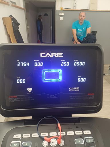 Course à pied le matin , tapis Pyramidal : 5 min 9 kms /hpuis 200 mètres 9 km/h ↗️ 16 km/h ↘️....