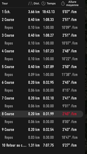 Échauffement + reco