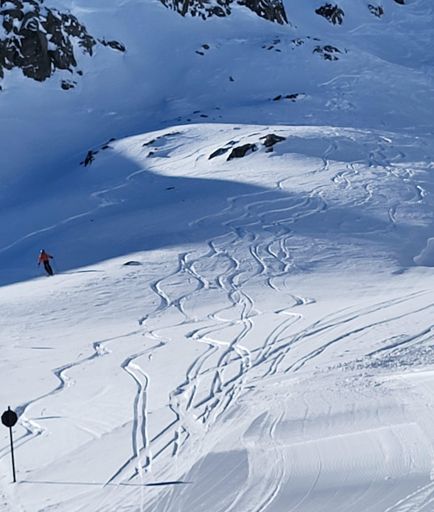 Skiabfahrt zur Mittagszeit