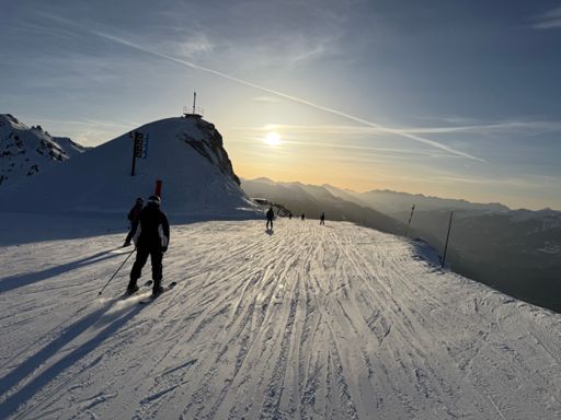 Skiabfahrt am Morgen