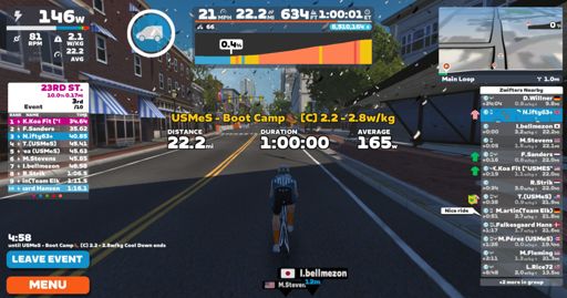 USMeS - Boot Camp🥾 2.2 - 2.8w/kg (C) on Libby Hill After Party
