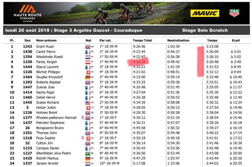 Stage #3 - Haute Route Pyrenees. Again 1st M40 / 4th overall (net time). No risk no fun, 1st over the line đ (but almost lost my 3rd GC because of it)